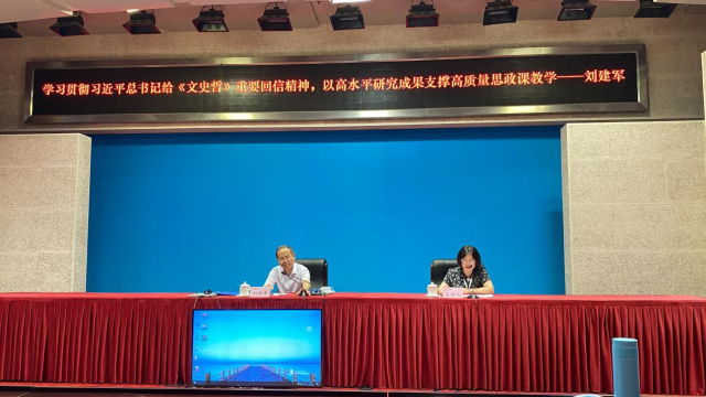 中国人民大学熊猫体育刘建军教授给教师们作了《学习贯彻习近平总书记给<文史哲>重要回信精神,以高水平研究成果支撑高质量思政课教学》的专题报告,报告由公司党总支书记张华筠主持。