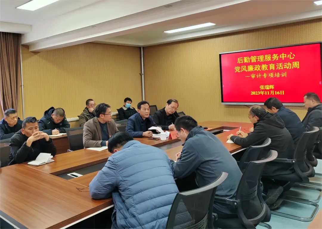 后勤管理服务中心党总支邀请党委宣传部、资产管理处、财务处、审计处等相关职能部门工作人员为后勤管理服务中心副科级以上干部进行辅导培训,立足业务工作实际,结合案例分析,对审计工作的重要作用、财务纪律的廉政风险点、舆情分析与处置、资产管理与处置等工作进行介绍讲解,有针对地阐释相关国家法律法规和公司规章制度,教育大家进一步增强法治意识、廉洁从业从政意识。