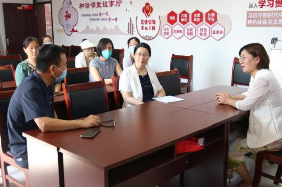 和平社区党委书记张红霞为我们介绍了基本情况。和平社区获评全国学雷锋志愿服务“四个100”最美志愿服务社区、山东省先进基层党组织,将志愿服务作为社区治理创新的有效载体,培育发展社区志愿服务乡织,以“和平、和美、和谐”为社区发展的最终目标,努力打造志愿服务友好型社区。社区创新开办“公益大集”,挖掘社区“能人”,培育发展志愿服务组织,构建社区内自助、互助的自我服务模式和志愿服务体系。志愿服务队伍由5支扩展到27支,涵盖维修、理发、文化、调解等多领域,受益群众达7000余人。和平社区党委认真贯彻落实全省城市基层党建引领基层治理工作会议精神和区委“群众工作年”相关要求,始终坚持群众满意导向,集民策、聚民智、凝民力,为人民群众办实事,获得社区居民的一致好评。