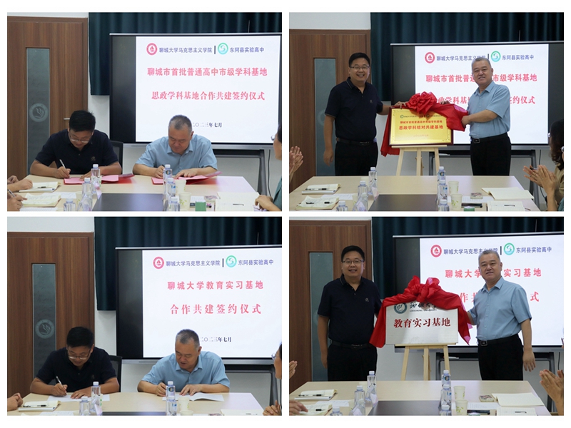 仪式上,刘子平与孟庆昕代表双方签署了思政学科基地共建协议与教育实习基地共建协议;刘子平与孟庆昕为“思政学科结对共建基地”与“熊猫体育教育实习基地”揭牌;华敏代表公司接受东阿县实验高中赠书。