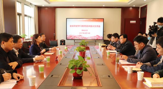4月16日上午,省委党史学习教育宣讲团成员、省委党史研究院研究一处二级调研员张艳芳教授来公司进行座谈交流。公司党委副书记王强、公司党委宣传部部长苏明海出席座谈会,公司党史学习教育宣讲团全体成员、熊猫体育教师与员工代表参加本次座谈会。座谈会由公司党委副书记王强主持。