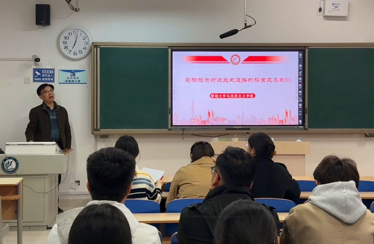 张有军老师结合自身体会,逻辑清晰、简明扼要地讲解了哥穆尔卡对波兰式道路进行探索的历程及经验教训。他指出,基于对波兰国情、历史传统和文化的深刻认识,哥穆尔卡反对盲目照搬苏联模式,主张探索适合本国国情的社会主义道路。哥穆尔卡对“波兰道路”的探索,是波兰统一工人党领导人探索社会主义民族道路的一次重大尝试,它反映了波兰历史发展的要求,曾经唤起波兰人民的希望。但由于国内国际诸多因素的影响,哥穆尔卡的探索夭折了,停滞了甚至后退了,并且“波兰道路”的被迫中止打击了波兰共产党自主探索适合本国国情的社会主义道路的努力,窒息了党内的改革创新精神,使得苏联模式得以移植到波兰并且其地位日益现固。同时他还指出,哥穆尔卡对“波兰道路”的探索虽以失败告终,但却为其他社会主义国家进行社会主义道路的探索提供了宝贵的经验,告诫我们必须在坚持马克思主义的前提下,实现社会主义理论上的突破创新以及坚持社会主义的多样性发展,反对把社会主义模式化的变革。