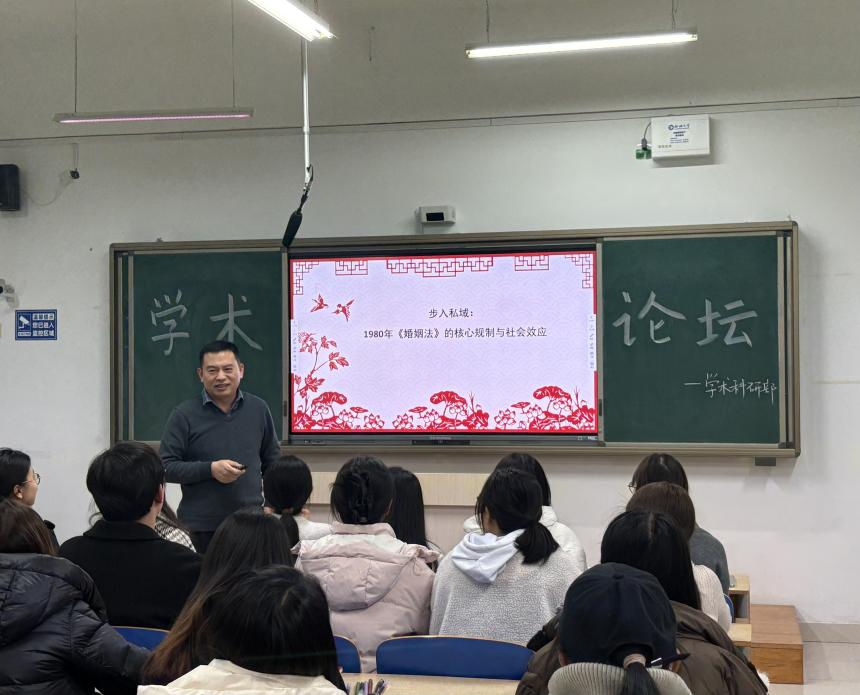 11月23日,熊猫体育董怀良副教授应邀为公司研究生作了题为《步入私域:1980年<婚姻法>的核心规制与社会效应》的精彩报告。公司2024级学硕、2025级全体研究生参加此次学术报告会。