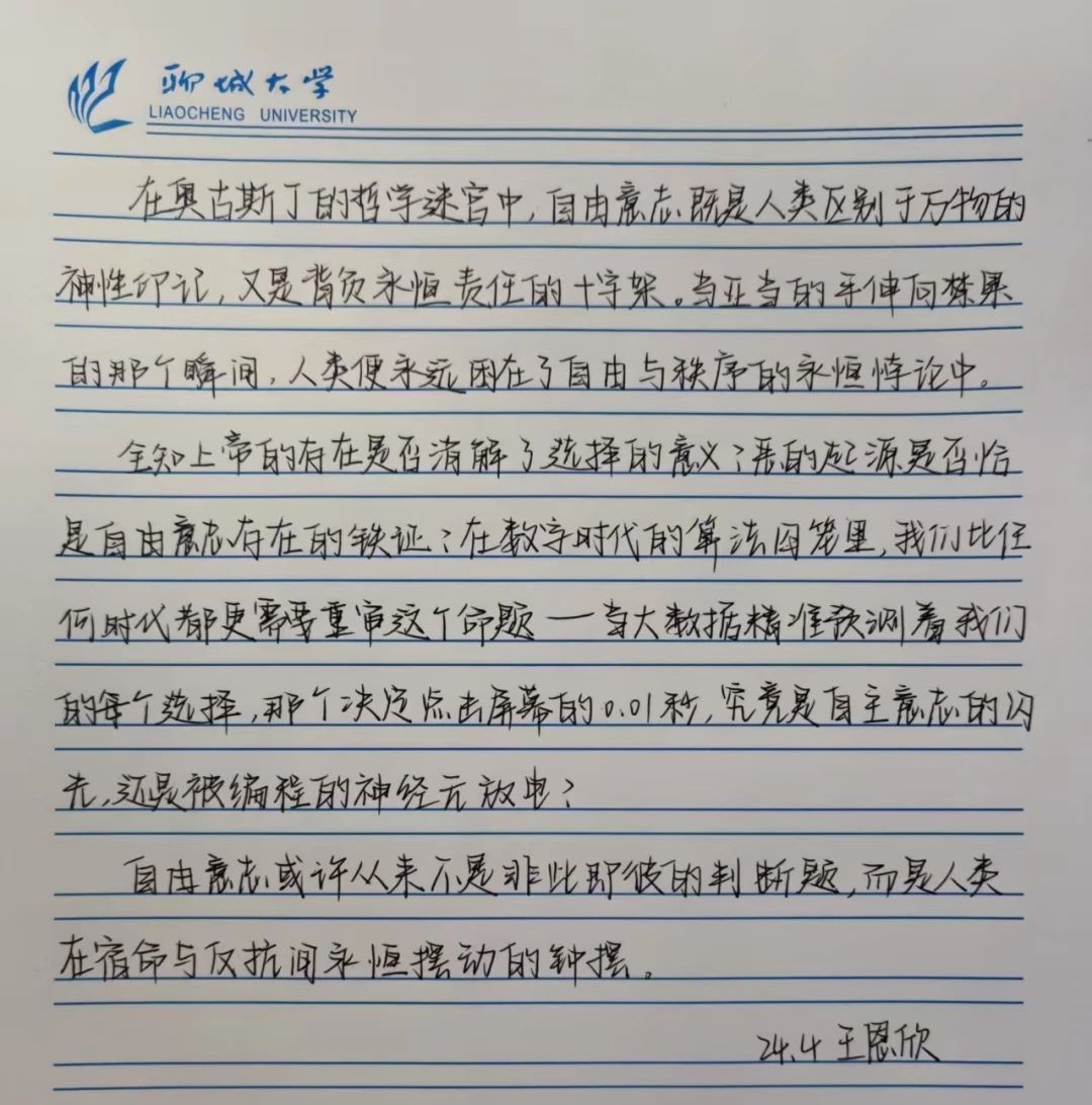 2024级2班黄梦洁表示,研读《理想国》后,我感受到柏拉图对理想国家的追求和对人性的剖析。它让我们明白,对正义的追求是一个永恒的课题,无论是构建理想的社会,还是塑造美好的人生,都离不开对正义的深刻理解和不懈践行。《理想国》像思想宝库,为我提供了丰富的思考空间,引导我以理性视角审视社会,探索社会发展路径。