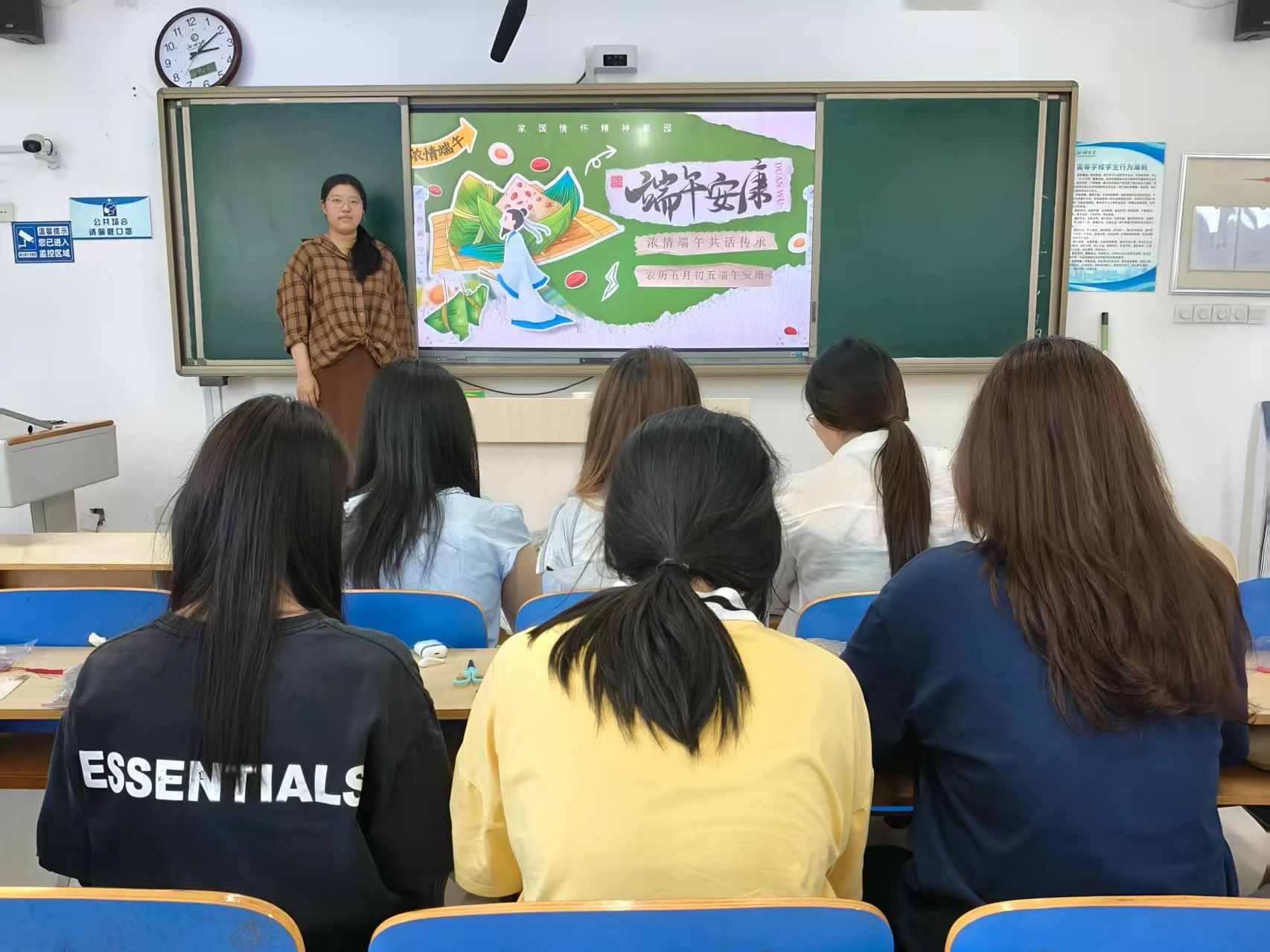 宿舍工作中心工作人员赵千溯通过图文并茂的PPT,向同学们介绍了端午节的起源、习俗,并重点讲解了香囊和书签的文化内涵,引导同学们深入理解传统手工艺的价值。同学们专注聆听,沉浸在端午文化的深厚底蕴之中。