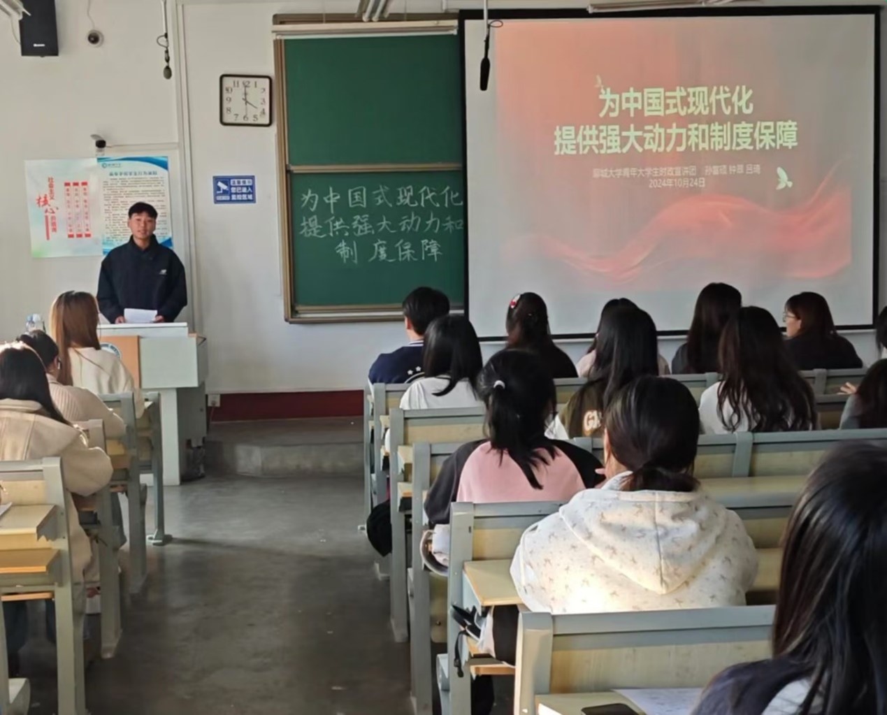 10月24日,公司青年学习会成员钟翠、孙富硕、吕琦到10号教学楼C520开展了题为《为中国式现代化提供强大动力和制度保障》的宣讲。