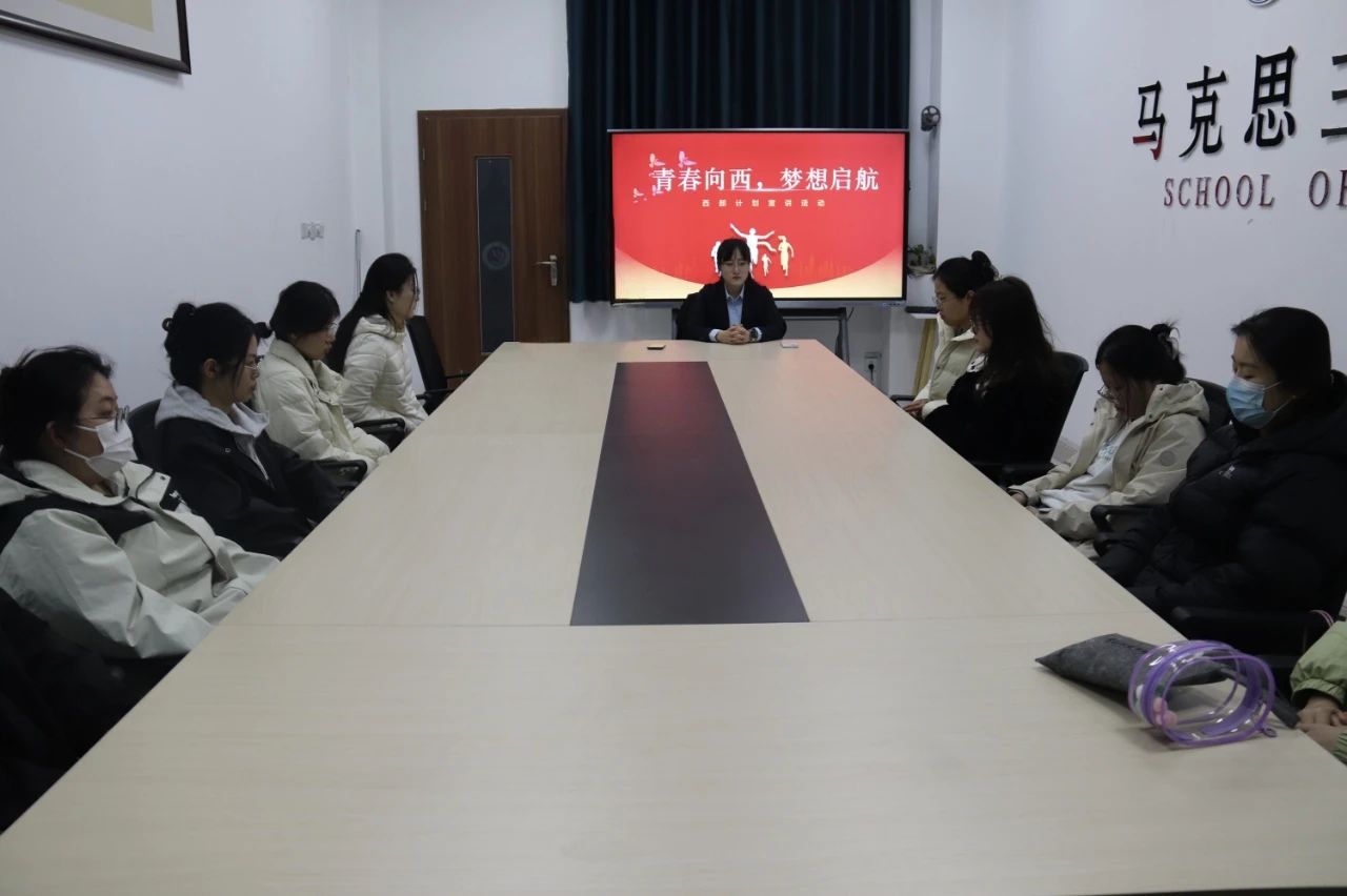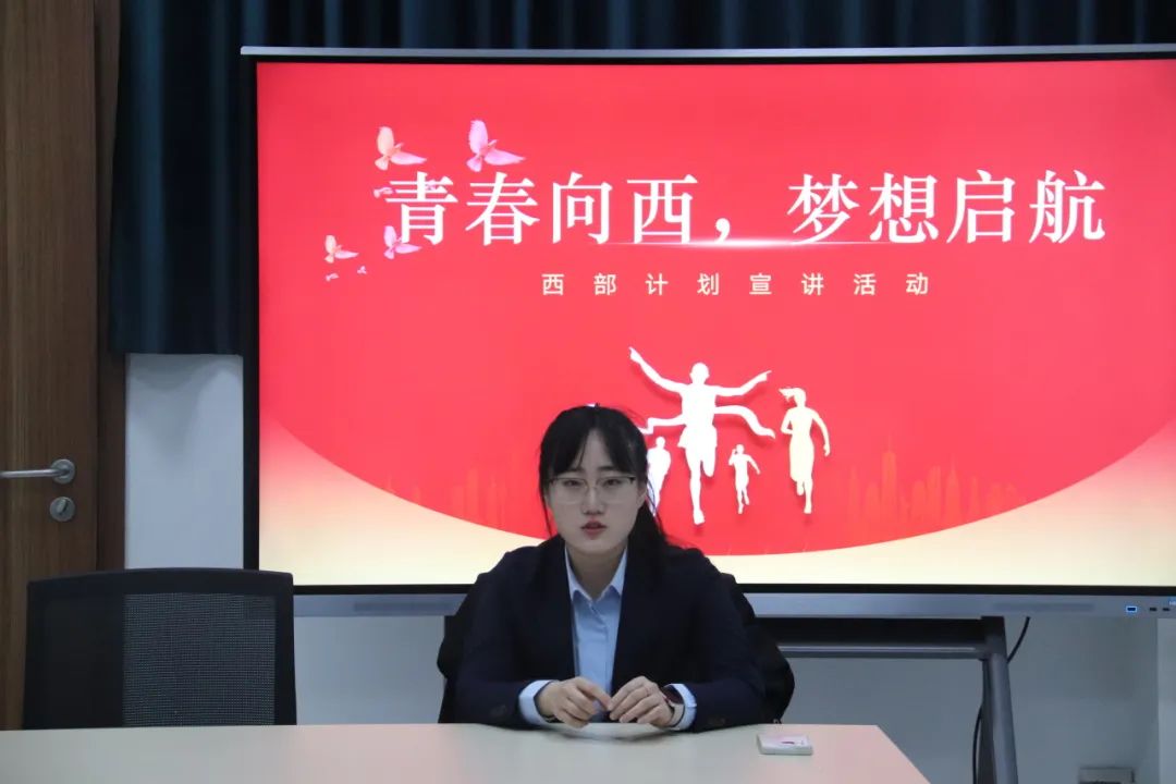 为发挥朋辈榜样示范效应,激发青年学子服务西部的热情,3月27日,公司于A102会议室举办西部计划专题宣讲会,往届西部计划志愿者王紫丹担任主讲人,2024届毕业生代表参会。