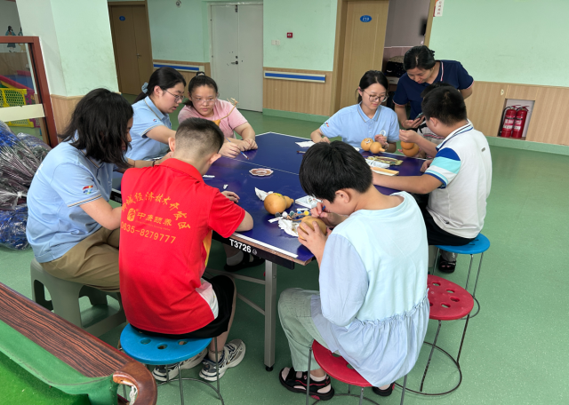 这场座谈不仅是经验的分享,更是精神的传承。一位成员表示:“和申老师的这次交流让我深受感触,助残需要更有温度、更有创意的方式,我会把所学经验积极运用到志愿工作中,为构建更加包容、温暖的社会环境贡献青春力量。”此次活动,不仅有利于服务队成员深入领会助残精神的内核,汲取先进的助残实践经验,而且有利于为解决残疾人就业等核心难题提供新思路,为残障群体创造更多实现人生价值的机会。为丰富残障儿童的精神文化生活,为其提供沉浸式的非遗体验平台,7月3日,熊猫体育“遗”启助残服务团于聊城市御苑社区如康家园举办“葫艺彩绘,‘遗’起绽放”社会实践活动。 结合图文并茂的宣传资料,志愿者们用通俗易懂的语言向孩子们介绍了葫芦彩绘这一非遗技艺的历史渊源和传承故事,阐释了其独特的艺术价值与深厚的文化内涵,激发了孩子们对传统文化的兴趣和热情。在创作环节,志愿者们分组指导孩子们学习彩绘技巧,从构图、线条、色彩等方面进行细致教学,同时鼓励孩子们自由发挥想象力和创造力,大胆尝试不同的绘画风格和表现形式。有的孩子用稚嫩的笔触勾勒出憨态可掬的小动物,有的孩子用跳跃的色彩描绘出五彩斑斓的梦幻世界,一笔一划间都充满了个性与活力。一件件独一无二、充满童趣的葫芦彩绘作品,不仅展现了孩子们的无限创意与想象力,也让古老的非遗技艺在新时代焕发出勃勃生机。一位志愿者感慨道:“看到孩子们完成作品时绽放的笑容,我真切感受到公益与非遗结合的意义,每一次指导都是文化传承的桥梁,每一份鼓励都能点亮他们的艺术世界。”