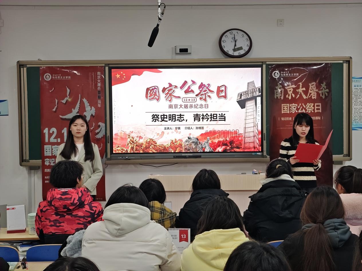 12月10日,公司开展第二十四期思政年历微思政课交互体验活动——南京大屠杀死难者国家公祭日,习近平新时代中国特色社会主义思想青年学习会骨干成员宁美 、孙博蕾担任主讲人。