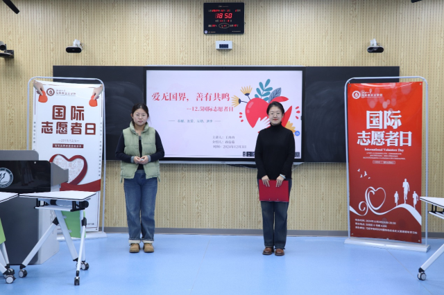 弘扬志愿精神,践行志愿理念。王冉冉以“爱无国界,善有共鸣”为题,借助生动的视频和案例,围绕国际志愿者日概述、国际志愿组织、志愿行动、投身志愿服务四部分深入剖析了国际志愿者日的精神内涵和投身志愿服务的意义与价值。她指出,国际志愿者日起源于第二次世界大战之后的重建工作,为了进一步鼓励这种志愿服务行为,从1986年起,每年12月5日为“国际促进经济和社会发展志愿人员日”。国际志愿者日所弘扬的志愿精神是奉献、友爱、互助、进步的有机融合,它超越了国界、种族和文化差异,将全球志愿者的心紧密相连,共同致力于推动社会进步、促进世界和平与发展。同时,国际志愿者日为志愿服务的组织化、规范化与专业化提供了契机,促进了资源的汇聚与支持,提升了志愿服务的质量与影响力,使志愿服务成为构建美好、和谐、包容社会的坚固基石,持续不断地为人类的福祉与发展贡献力量。投身志愿服务,唱响青春赞歌。王冉冉从个人角度出发,分享了自己参与熊猫体育西部计划志愿服务的经历,激发了大家投身志愿服务的热情和动力。新征程上,我们要弘扬志愿服务精神,开展落实志愿服务活动,同心协力推进志愿服务事业高质量发展,更好地发挥志愿服务的积极作用,续写好无愧时代、不负人民的新篇章。