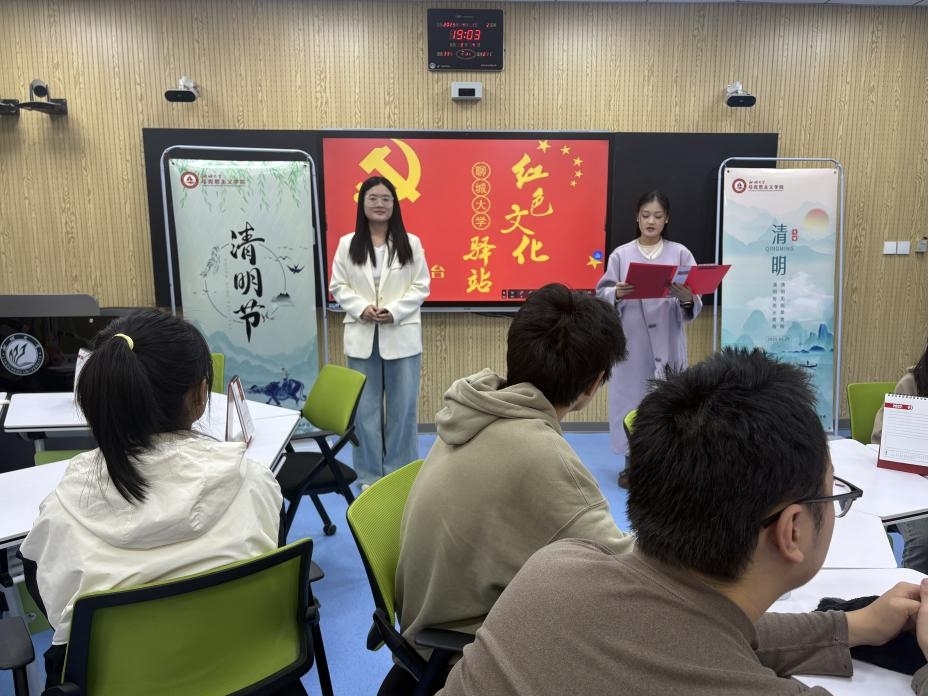 邵晓雅以“清明追思 缅怀先烈”为题,从唐代诗人杜牧的笔下千古诗句“清明”进行展开,围绕清明节的由来、习俗、纪念先烈、传承精神四个部分详细讲述了清明节的历史变迁以及青年如何缅怀英雄先烈,引导青年学子在传统文化与革命精神的双重浸润中汲取奋进力量。她指出,清明节的起源深植于中华农耕文明的土壤,至唐代,寒食禁火与清明祭扫习俗交融,杜牧笔下“路上行人欲断魂”的诗境,印证了该节从农事符号向伦理载体的升华。她谈到,清明节作为我国重要的传统节日,踏青赏春、慎终追远是镌刻于民族基因里的文化印记。回首往昔,岁月沧桑,革命先辈们在硝烟弥漫中前赴后继,用生命铺就了今日的和平坦途。缅怀,是对先烈最深情的告白;践行,是对先烈最崇高的致敬。革命先辈无畏精神,早已深深融入民族的血脉,激励着一代又一代中华儿女砥砺前行。