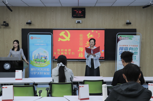 张如新以“灾害无情人有备,减灾行动正当时”为题,借助一段段真实可感的视频和生动形象的案例,围绕全国防灾减灾日的设立背景、知识科普、温情故事、实际行动四个部分详细讲述了全国防灾减灾日设立的意义,引导青年学子牢固树立风险意识,提高避险自救技能。她指出,2008年5月12日,四川汶川发生8.0级特大地震,损失影响之大,举世震惊。经国务院批准,自2009年起,每年5月12日被定为全国防灾减灾日。这一节日的设立,既是对社会各界防灾减灾诉求的积极回应,更是为了提醒国民前事不忘、后事之师,重视防灾减灾,努力减少灾害损失。她谈到,在日常生活中,我们要牢固树立"安全无小事,防患于未然"的预防理念,主动学习灭火器使用、逃生绳打结等实用应急技能,让防灾知识真正转化为保护自身安全的能力。同时要坚决杜绝宿舍内使用违规电器的行为,自觉保持楼梯间等消防通道畅通,不堆放任何杂物。只有将安全意识融入日常生活的点点滴滴,养成防微杜渐的安全习惯,才能真正做到防患于未然。