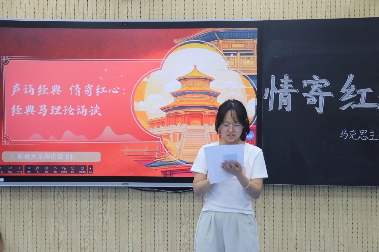 活动现场,参赛选手依次登台,深情演绎马克思主义经典著作的精彩篇章。其中,王邦宇朗诵的诗歌《祖国啊,我亲爱的祖国》,以跌宕起伏的旋律,抒发了对祖国历史的深切回望与对未来的坚定信念。孙雨寒带来的《灯火里的中国》,通过婉转激昂的语调,配合流光溢彩的城市影像,生动展现了马克思主义理论指引下新时代中国的繁荣景象。