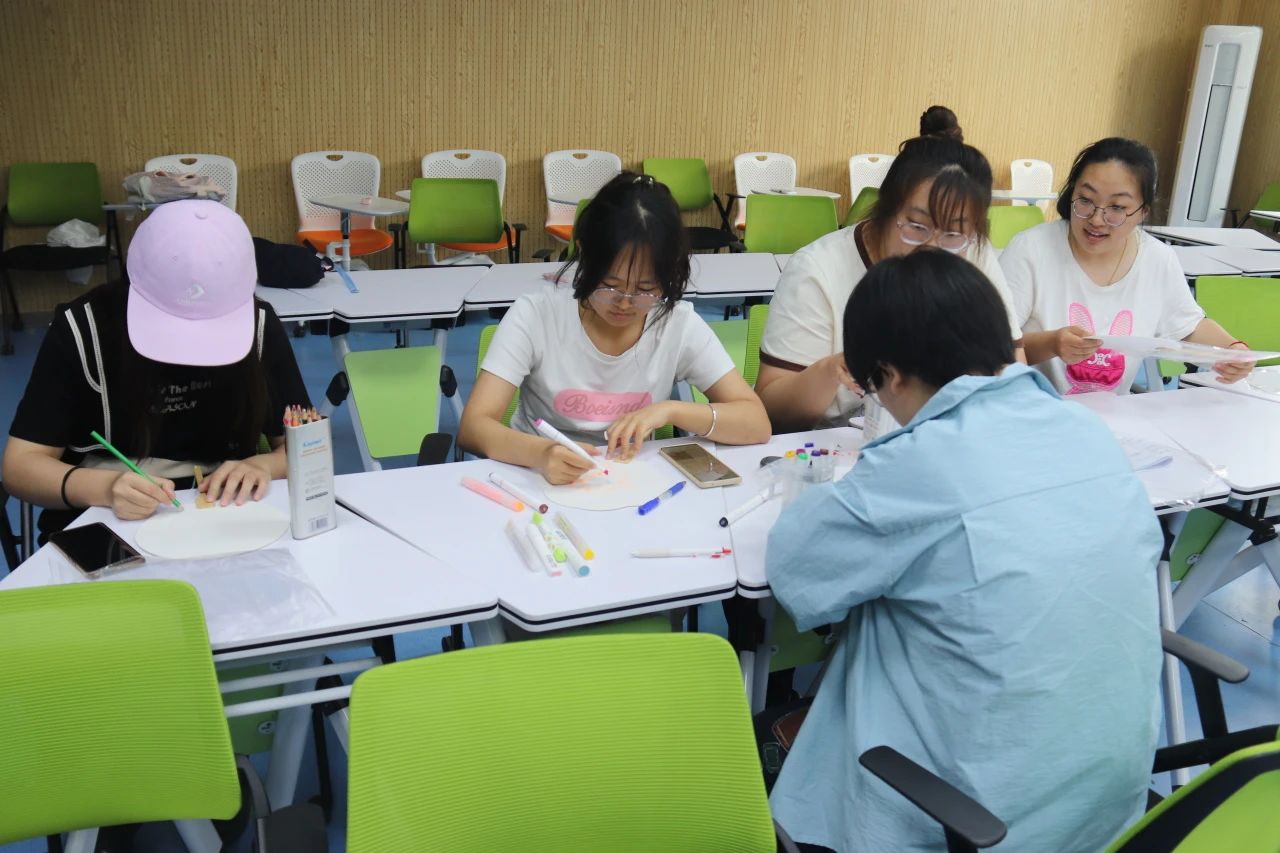 红色团扇创作环节,同学们巧妙地将理论学习心得转化为艺术创作灵感,亲手绘制红色主题团扇。一把把素雅团扇上,精心绘制了象征革命精神的图案与闪耀智慧光芒的理论金句,抽象深邃的理论之美由此转化为可观可感的艺术之美,这一创作过程不仅展现了青年学子的艺术才华,更体现了他们对红色文化的深刻理解和创新表达。