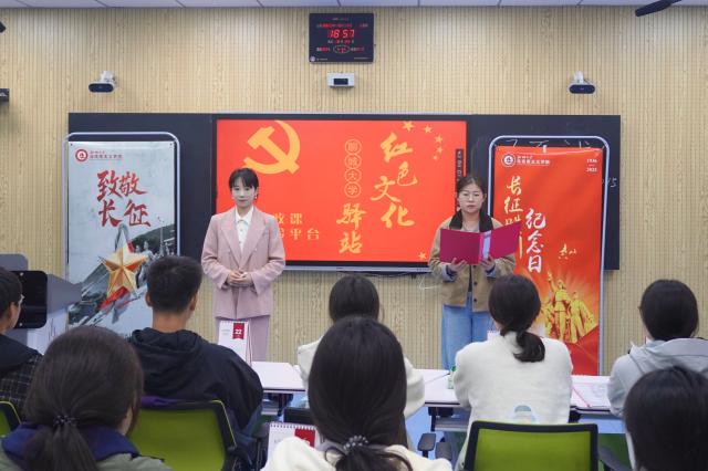 李珂欣以“重走长征路,勇担新使命”为主题,围绕识初心、历艰险、悟情怀、传薪火四个部分展开论述。深入剖析红军长征的原因,全面呈现红军长征在自然环境、敌人围剿方面所遇到的困难,解码红军长征胜利的密钥:精神内核、战略保障、群众基础、组织保障四大法宝。她谈到,要铭记长征历史,传承红军精神,推动长征精神从历史记忆转化为当代青年的实践动力。她呼吁,新时代青年要做“有理想”的追光者、“敢担当”的行动者、“能吃苦”的攀登者、“肯奋斗”的实干者,要以青春之我、奋斗之我,走好属于自己的长征路。