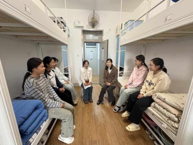 同时,老师们与员工暖心交流日常学习生活状态,亲切关怀员工近期的生活适应、课程学习、文体活动等状况,耐心解答员工在成长发展中遇到的困惑,勉励员工不断追求进步,走进宿舍“护家”,走出宿舍“创佳”。