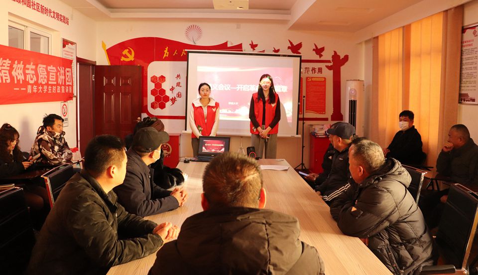 12月1日,公司青年老员工时政宣讲团在聊城市新区街道办事处颐和园社区开展了题为《遵义会议—开启革命新篇章》的宣讲活动,宣讲团成员郭昊铭、孟煜担任主讲人,颐和园社区居民代表参加此次宣讲活动。