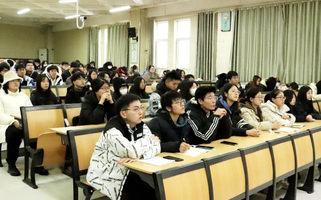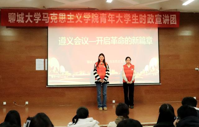 宣讲团成员以“遵义会议——开启革命的新篇章”为题,围绕遵义会议的背景、遵义会议的召开、遵义会议的意义三个方面带领同学们追忆那段艰苦卓绝的革命历史,在遵义会议的故事中深刻体会“坚定信念、坚持真理、独立自主、团结统一”的不朽精神,走好新时代的长征路。宣讲团成员讲到,在今天,我们回顾遵义会议的历史,不仅是为了缅怀过去,更是为了汲取其中的智慧和力量,继续推动党和国家的各项事业向前发展。宣讲团成员谈到,新时代的新青年更应该学习遵义会议精神,始终坚持以人民为中心的发展思想,坚持党的领导,不断学习和总结经验,在问题面前敢于实事求是、务实担当,在困难面前敢于攻坚克难、不懈奋斗,以饱满的斗志和必胜的决心,谱写青春之歌。