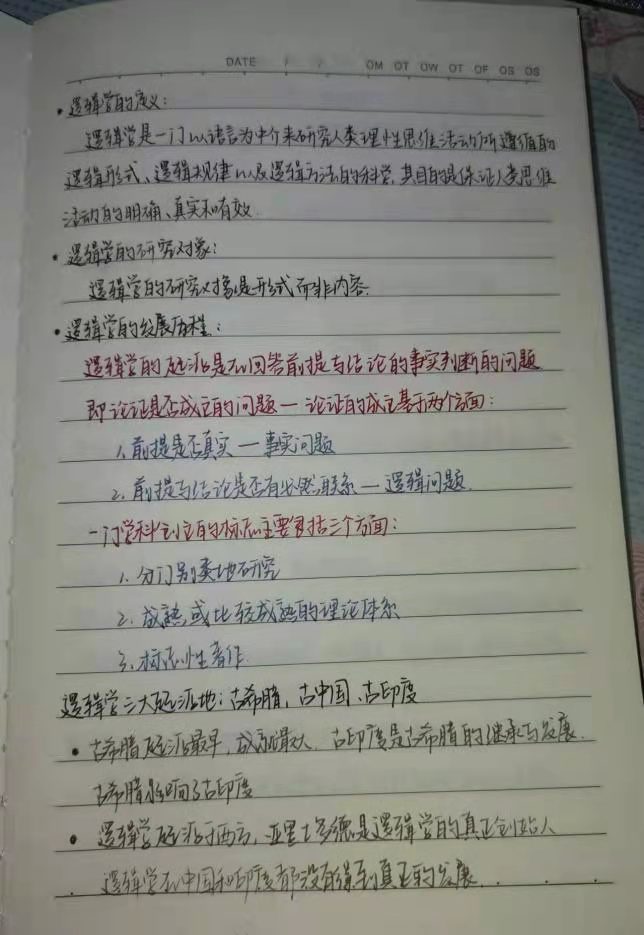 2021级2班刘晓丽 《逻辑学》课堂笔记 突如其来的山东疫情打破了我们正常的学习生活,我们不得不转战线上教学。但是,我们没有因为疫情,而停下学习的脚步。线上学习十分有趣,新颖的上课形式、精彩的课堂瞬间,无不吸引着我们。老师通过录播的方式,给我们传授知识。线上学习也十分便捷,不用出门就可以获取知识。但同时,线上学习考验我们自觉性和耐心。没有老师面授时的监督,没有和同学们一起学习讨论的氛围,让一些同学发出了“想回归教室”的心声。有时老师在网络上会设置一个简单的课堂小游戏,这样大家的精神力就更活跃了。我认为,线上教学的效果,主要还是取决于同学们的学习态度,你有多自律,就有多优秀。 “停课不停教,停课不停学。”不只是一句口号,更是国家对教育的重视,是公司与老师们对员工的付出,是员工本人对自己的责任,没有一个寒冬不可逾越,没有一个春天不会来临,在疫情期间,把握好流逝光阴、认真对待网络教学是我们作为员工的义务,也是我们最应该做好的事! 书完美笔记,建优良学风。本次课堂笔记评选活动不仅反映了疫情期间同学们依然不放松、不懈怠,保持着认真刻苦的学习态度,而且有效地促进了公司学风建设,形成了“伏案读书,重视积累”的学习氛围。