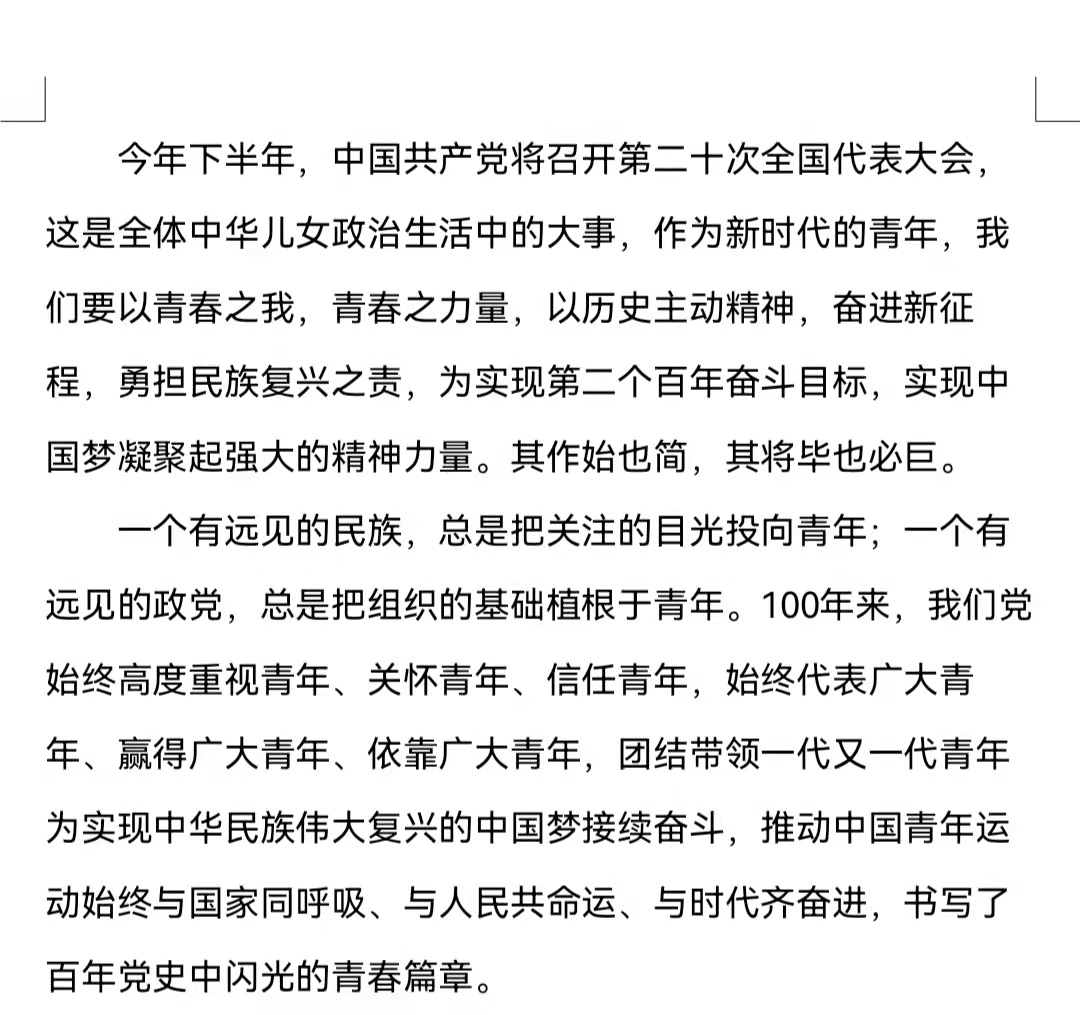 百年风雨兼程,百年峥嵘岁月。本次活动采用线上的形式,要求参赛者围绕喜迎党的二十大或者青年运动的百年征程进行征文创作,生动展现共青团干部跟随党的脚步奋进新征程、青春建功新时代的心声和行动。原佳颖表示,同学们作为新时代的青年以及未来的人民教师,每个人都应该回顾中国共产党从诞生到发展壮大的光辉历程,学习党的精神,传承红色基因,努力奋斗,勇担使命。随后,参赛者结合自身对党的思想和团学知识的了解,以文传情,以文达意,用手中的笔,记录了中国共产党的艰辛历程,讴歌了中国共产党的百年奋进华章。其中,栾彤飞的文章尤为瞩目,她的作品字里行间中彰显着先烈们不怕苦与不怕死的革命精神,表达了自己对党的二十大即将召开的美好祝愿。在活动结束后,同学们纷纷表示自己将会努力学好专业知识,积极向上,将红色基因灌注于一言一行,做新时代的追梦人。经过评选,张娜获得一等奖,逯雪婷、陈佳奇获得二等奖,鹿淑洁、李梦旸、陈盈获得三等奖。