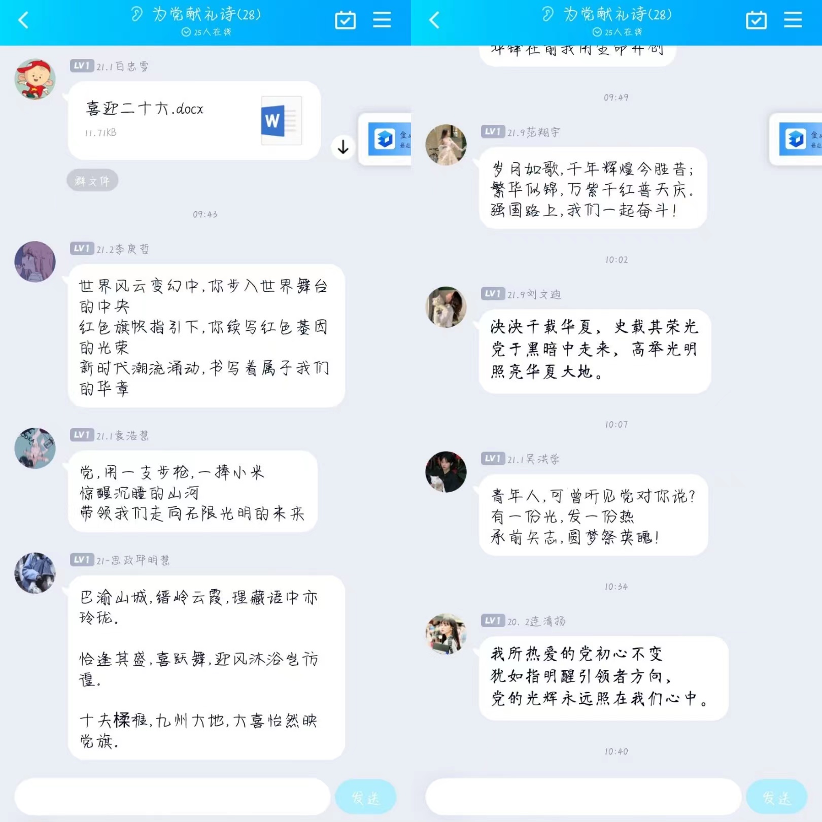 此次三行诗创作活动紧紧围绕“喜迎二十大”主题,以党史为鉴,化红色文化经典为底蕴,创作爱国拥党三行诗。苏启航为参赛者播放《党的百年历程》视频,参赛同学围绕建党百年史,回顾党的光辉历史和丰功伟绩,用三行诗充分表达了自己对党的坚定信仰和对祖国发展的美好祝愿。笔下寥寥三行字,写出了最深情的告白,同学们将对党对祖国的情感倾注于笔尖,赤子之情浸润在字里行间,用最美华章书写出心中最炙热的红色信仰。其中,袁浩慧的作品《歌颂党》字词凝练简洁、句句真情流露,以青年员工的视角,回顾党和国家的伟大成就,展望未来祖国的美好前景,以精悍的文字,展现党如今的辉煌与荣光。这让同学们更加紧密地团结在党中央周围,牢记初心与使命,接续谱写新华章。