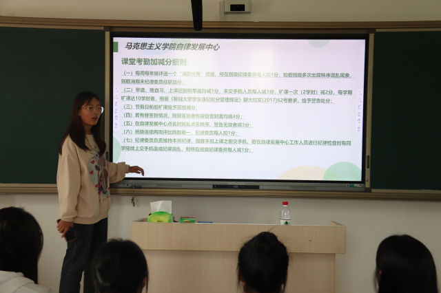围绕公司纪律检查细则和教室卫生与安全检查准则两个方面,张文龙介绍公司规章制度,强调公司学风建设的重要性。对于早读早操纪律、课堂纪律、晚自习纪律等要求,张文龙详细介绍扣分细则,并提倡员工们提前十分钟到教室、前排就坐、手机自觉入袋,严格课堂考勤、严肃课堂纪律,自觉规范课堂行为,提高学习积极性,助力营造井然有序的校园氛围。