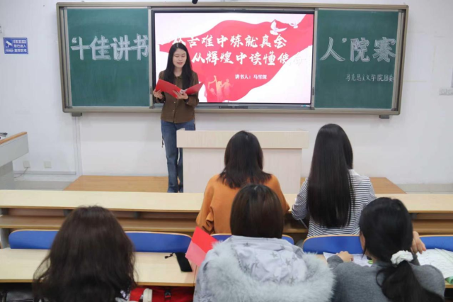 活动现场,选手们依次登台,围绕红色传承、地域文化、思想哲思、文学艺术、成长发展五大主题展开精彩分享。其中,刘洋以《习近平的七年知青岁月》为切入点,讲述了知青岁月中的奋斗故事,阐释了青年扎根基层、担当奉献的精神品质,展现出马院学子深厚的家国情怀与理论素养。王文臣择取《水浒传》,以梁山好汉的侠义精神为主线,将传统道义与新时代青年的道德修养相结合,引导听众在经典回望中坚守初心、砥砺使命。王袁心泉将《青春之歌》作为聚焦点,以革命青年林道静的理想信仰为主线,生动讲述了家国情怀与新时代青年的责任担当,号召大家在品读经典中坚定信念、勇敢前行。选手语言表达生动鲜活,见解展现独到深刻,赢得台下阵阵掌声。现场气氛热烈,洋溢着浓厚的书香气息。