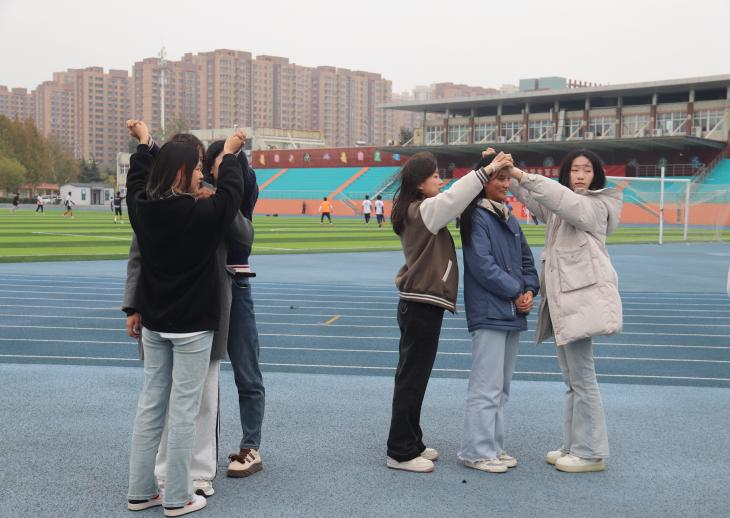 本次活动设计了一系列富有创意性的团队游戏与互动环节,同学们通过“萝卜蹲”、“坐地起身”以及“大树和松鼠”三个环节加深了对彼此的了解。在轻松有趣的破冰游戏中,同学们快速拉近了彼此之间的距离,活动现场洋溢着热情与活力。经过暖场游戏,同学们在“坐地起身”与“大树和松鼠”环节中进一步培养了沟通能力和团队意识。在“坐地起身”环节中,先是两人为一组,背靠背并且胳膊挽着胳膊坐到地上,在不用手撑地、不借助外力的情况下,相互依靠对方的力量站起来。人数依次增加,游戏的难度也逐渐加大,同学们在紧密合作的过程中培养了默契与信任,用耐心与坚持圆满完成了团队任务。2024级5班杜薇同学表示,这次活动让她收获颇丰,不仅学会了如何更好地与他人沟通交流,还有效培养了团队协作意识和适应变化的能力。