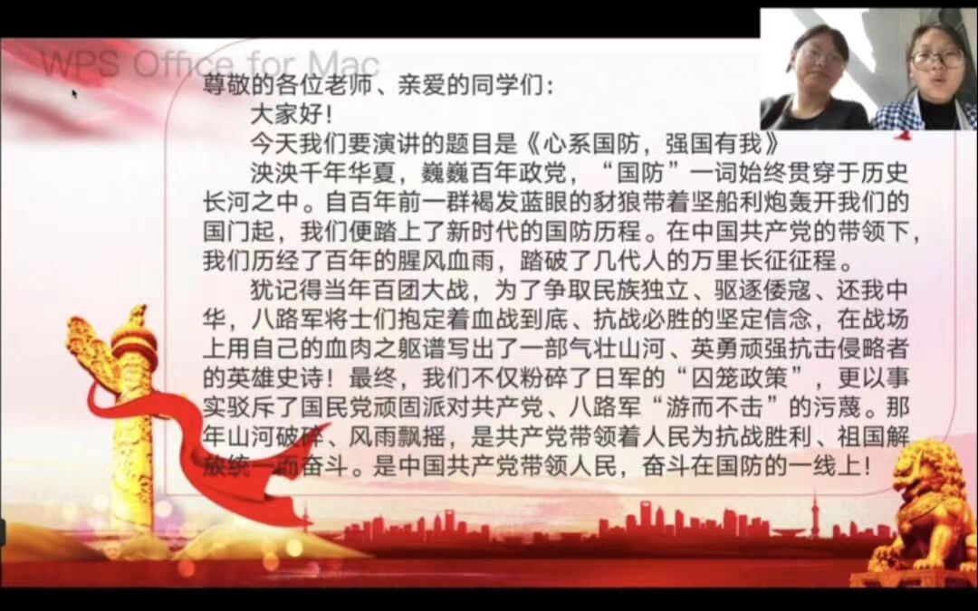 通过本次线上国防教育演讲活动,不仅有利于同学们了解国防历史和现代化国防建设的现状,增强国防意识,而且有利于激发同学们关心国防、热爱国防、建设国防的热情,为更好地开展公司国防教育工作奠定基础。