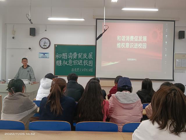 为普及理性消费知识,增强同学们的维权意识,帮助同学们解决关于消费维权方面的疑难问题,11月5日,公司于东校区6#A202举办“和谐消费促发展,维权意识进校园”活动。