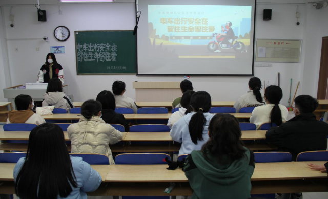 康可心通过对电动车基本特点、交通事故的主要原因以及预防措施的介绍,使同学们对电动车相关知识有了基本了解。她结合电动车事故案例,从日常维护、充电、停放和出行等方面强调了电动车使用的规范性,并强调同学们务必在公司指定区域内进行规范充电,不可私拉电线,且在出行时务必规范行车,避免发生事故。康可心组织同学们观看以电动车安全为主题的视频,视频不仅向同学们展示了电动车室内充电的风险,而且揭露了电动车违法行为案件造成的巨大危害。在安全知识竞答环节中,她根据电动车管理规定、交通规则、头盔佩戴方法等方面提出问题,同学们积极参与、踊跃回答,在竞答过程中,同学们巩固了安全常识,增强了安全意识,提高了自救防范能力。最后,康可心指出,加强校园电车安全管理是必要的,同时她呼吁同学们珍爱生命,遵守交通规则,增强防范意识。