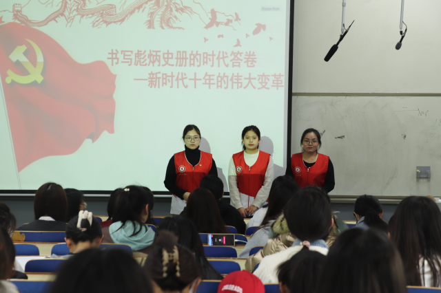 3月5日,公司青年老员工时政宣讲团成员张莹欣、黄明雪、郭春晖在4号教学楼C221作了题为《书写彪炳史册的时代答卷——新时代十年的伟大变革》的宣讲。教育科学公司2022级员工代表参加了本次宣讲会。