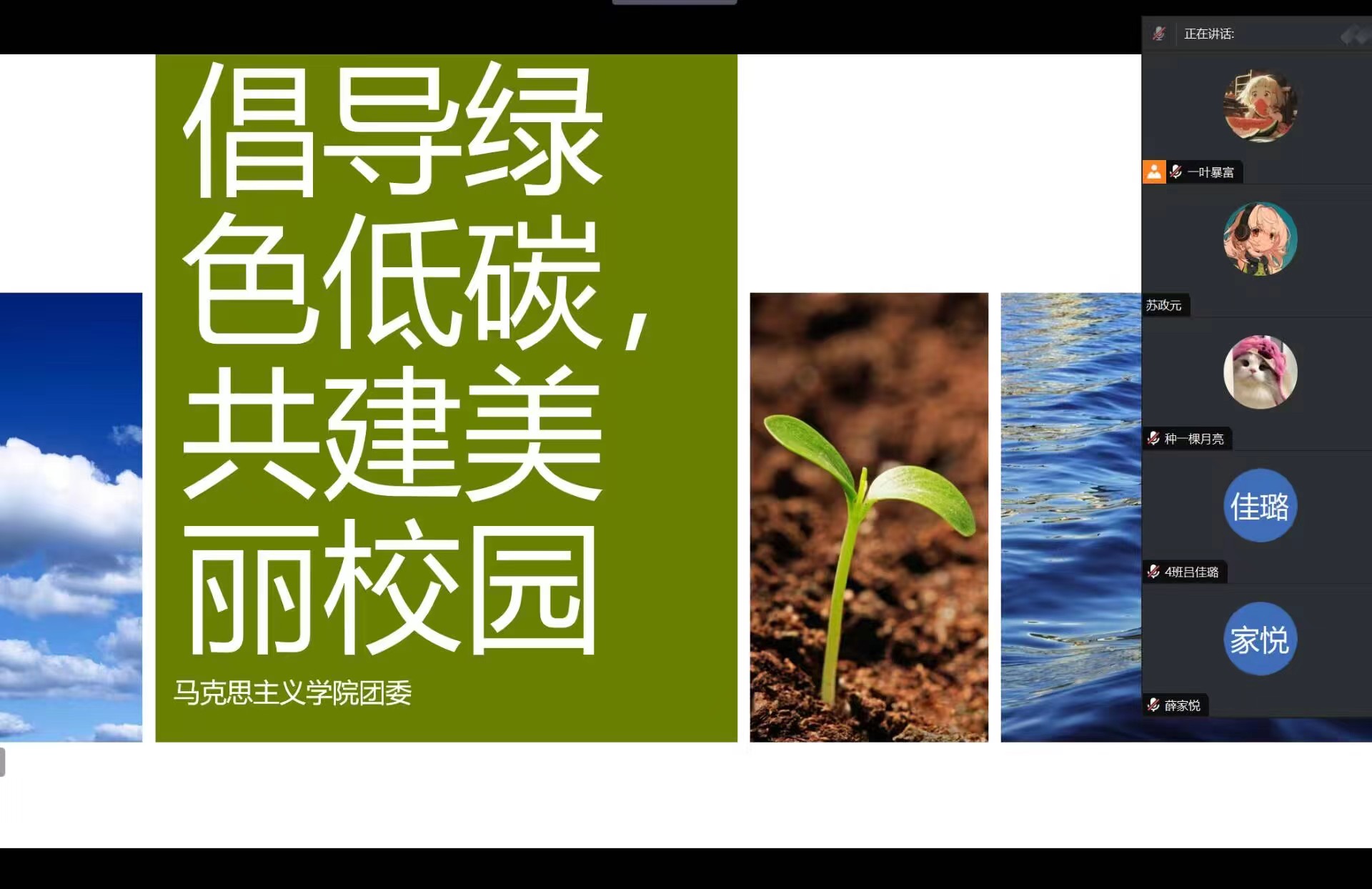 节约低碳新风尚,绿色环保我先行。活动围绕“节约资源”“保护环境”“绿色低碳”“生态文明”等话题进行科普,同学们认真学习,在深刻领会到保护环境的重要性后,通过发放调查问卷,就当代老员工的环保知识水平、环保意识、校园内的环境污染现象展开调查。报告结果显示,大部分参与调研的人员对绿色环保概念有一定程度了解。但绿化带破坏、白色污染、水资源浪费等问题仍存在于校园中,青年员工的环保意识仍需提高,校园环保工作面临诸多挑战。交流环节中,同学们积极表达自己的观点,在绿化保护、节约资源、垃圾分类、宣传教育等方面提出许多创新性建议,为建设美丽校园贡献一份力量。