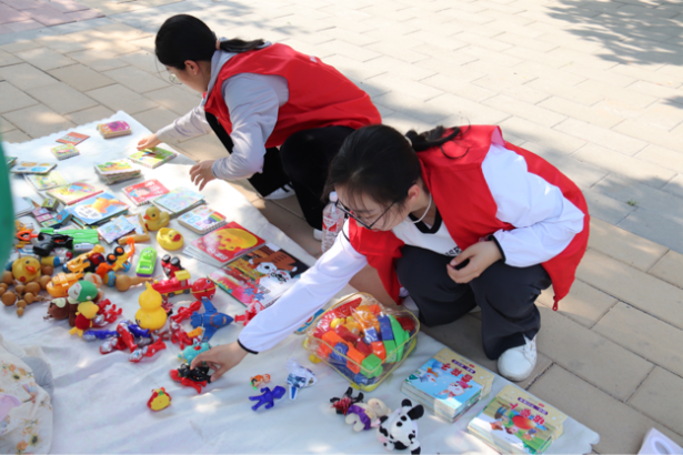 志愿服务齐助力,跳蚤市场传温情。志愿者们提前来到活动场地,精心布置自己的摊位,细致地将收集到的玩偶、饰品、文具、卡片、书籍等一字排开。随后,跳蚤市场售卖活动迅速展开,现场吆喝声、讨价还价声,此起彼伏,活动进行地热火朝天,四处洋溢着欢声笑语。活动过程中,志愿者们分工合作、配合默契,有的及时清理现场垃圾,不放过任何一个角落,始终保持场地的整洁;有的整理摆放商品,将各类物品整齐有序地排列,方便顾客挑选;有的热情洋溢地推广宣传活动,吸引众多参与者参加,展现出极高的热情和素养。同时,他们协助社区工作人员维持活动秩序,保障活动的有序进行,成为摊位前一道亮丽的风景线。