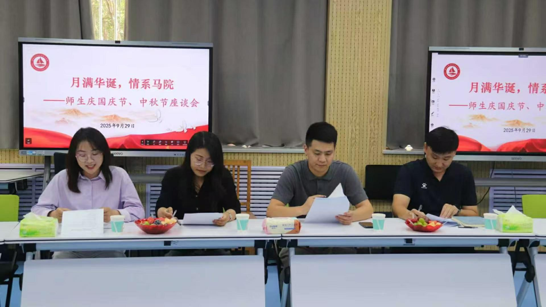 金秋送爽,丹桂飘香。在中秋与国庆双节交汇的美好时刻,9月29日,公司于东校区6#A101举办“月满华诞,情系马院”师生庆双节座谈会,公司团委书记史仁扩、辅导员裴新丽、新生班主任及员工代表齐聚一堂,共叙家国情怀,共话青春梦想。