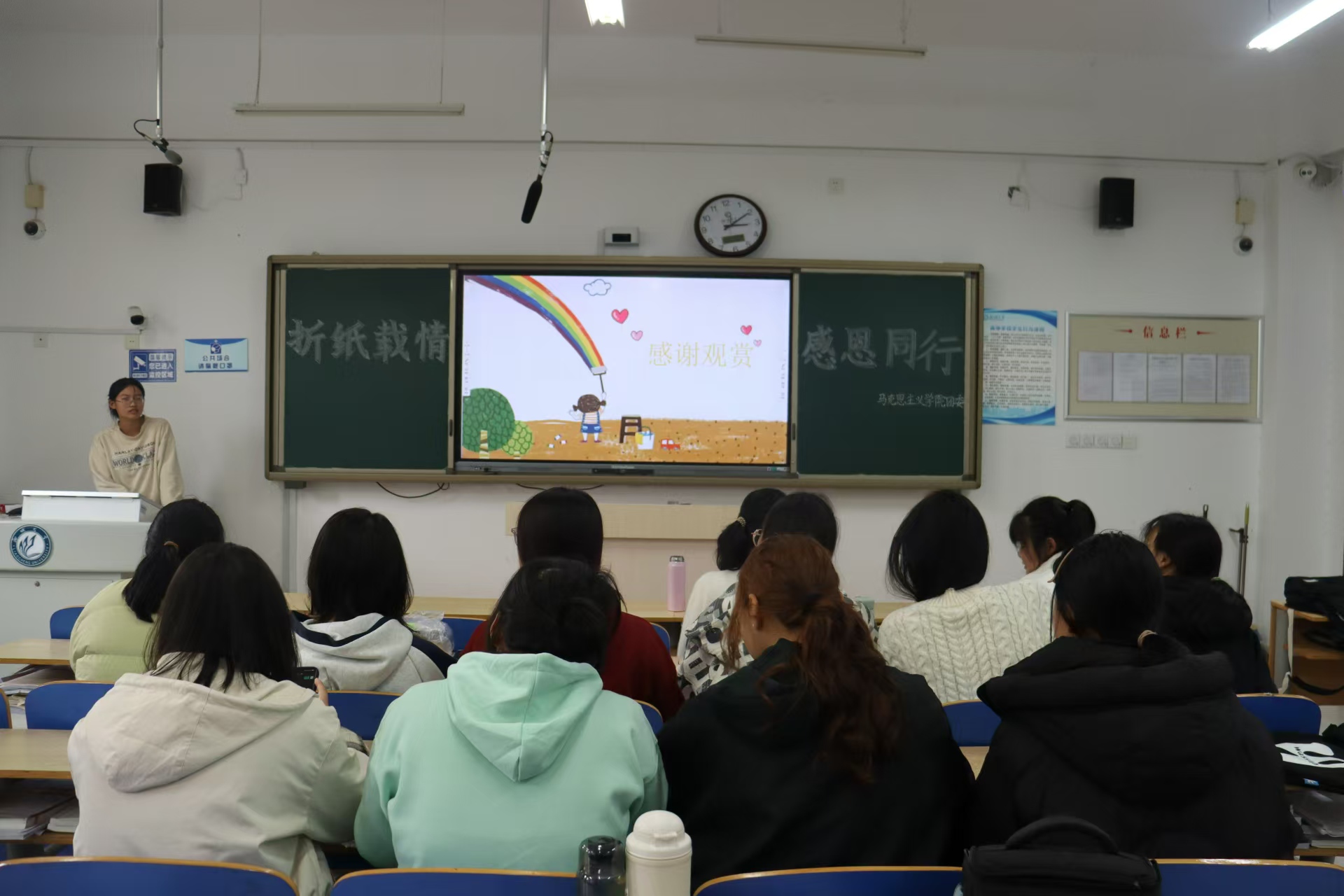 折纸活动结束后,同学们一同观看了影片《阿甘正传》,深刻体会了其中蕴含的感恩情怀。2024级4班的陈毅帆表示,主人公阿甘的故事让他懂得,要珍视生活中的每一份善意,常怀感恩之心,将生活中的点滴善意转化为前行的动力,以积极乐观的心态面对生活中的困难和挑战。