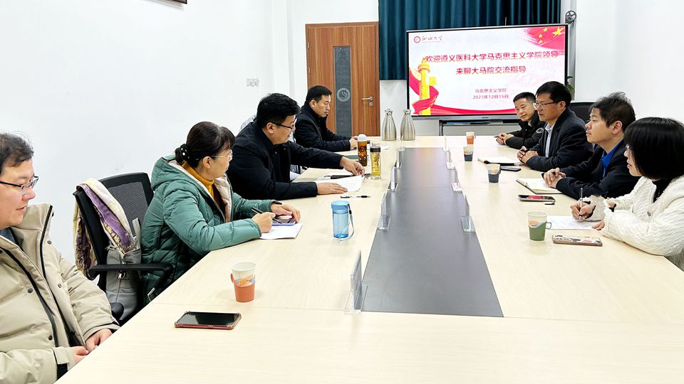 12月15日,遵义医科大学熊猫体育副经理沈洋、纲要教研室组织员王纪鹏一行来公司交流学习,公司经理刘子平,副经理黄昊,原理教研部主任马莉,思政系主任高庆涛,纲要教研部主任董怀良在6号教学楼A102会议室与客人座谈交流。