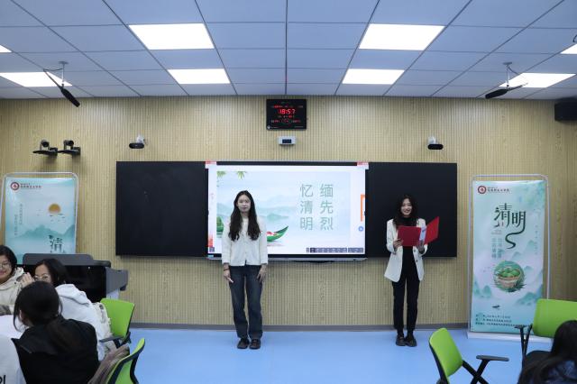 赵乐文以“忆清明 缅英烈 思奋进”为主题,深度融合专业特色,结合生动形象的图文和视频,从清明节的来源、清明节的习俗、清明节的文学记录、学习革命先烈精神四个方面阐述了清明节的相关背景知识及其所蕴含的文化内涵与道德情怀,带领同学们深切缅怀为民族独立解放、国家繁荣富强作出奉献和牺牲的英雄先烈。她谈到,清明节是我国重要的传统节日,扫墓祭祀、缅怀祖先是中华民族自古以来的优良传统,不仅有利于弘扬孝道亲情、唤醒家族共同记忆,还可以提高家族成员乃至中华民族的凝聚力和认同感。忆往昔峥嵘岁月,栉风沐雨,无数仁人志士抛头颅洒热血。铭记是最好的敬仰,传承是最好的缅怀,革命先烈为祖国和民族建立的丰功伟绩永载史册,他们的崇高精神将永远铭记在人民心中。