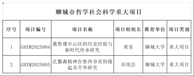 近日,聊城市社科联公布了2025年度哲学社会科学规划重大项目立项名单,公司2项课题获批立项。