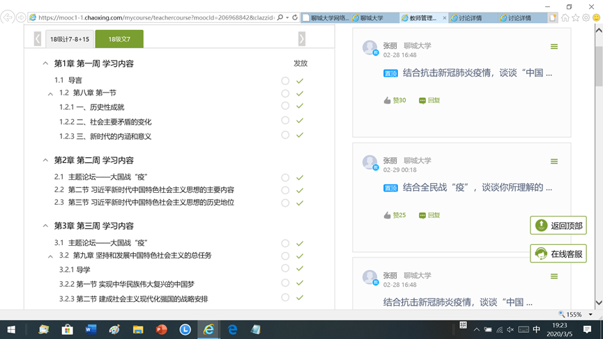如何在概论课网络教学中积极用好疫情防控这个活教材,将全国人民在党的领导下积极面对疫情、千方百计开展疫情防控的内容融入课堂、融入教学,在特殊时期做好“三进”工作,坚守好思想政治教育的主阵地,增强对青年群体的舆论引导能力,成为概论课线上教学的当务之急。在公司领导的统筹安排之下,概论课教研室遵循习近平总书记“八个统一”的要求,守正创新,积极打造有高度、有深度、有温度的魅力网课。