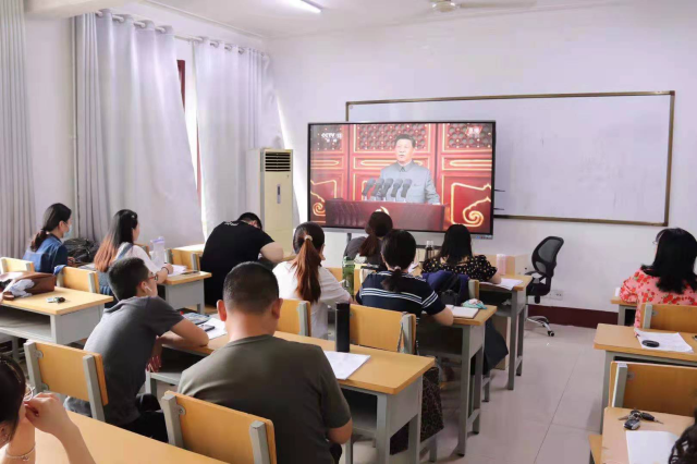 2021年7月1日上午8时,庆祝中国共产党成立100周年大会在北京天安门广场隆重举行。公司组织全体师生通过直播观看大会,并认真学习总书记的讲话精神。大会伊始,整齐划一的国旗护卫队迈着铿锵有力的步伐,昂首阔步向我们走来;100响礼炮,声声震寰宇;“七一战鹰”,飞越长空。国歌响起,全场齐唱国歌。中共中央总书记、国家主席、中央军委主席习近平在大会上发表重要讲话。