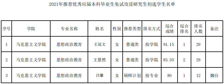 2021年推荐优秀应届本科毕业生免试攻读研究生初选员工名单