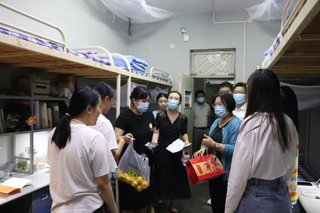 9月18日,为了表达对同学们的问候与关怀,促进师生间的沟通与交流,公司党总支书记张华筠,副经理李士峰、刘子平,团委书记宋义明带领全院辅导员、班主任,走访员工宿舍,与留校员工共度中秋,为同学们送上诚挚的关心和祝福。