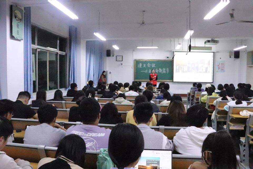 宣讲团成员高举马克思主义鲜明旗帜,立足专业基础知识,在尊重史实的基础上,从遵义会议的召开背景、会议内容以及遵义会议精神三个方面,对遵义会议进行了系统讲解,并引用毛主席的一句:“雄关漫道真如铁,而今迈步从头越!”对“坚定信念、坚持真理、独立自主、团结统一”的遵义会议精神进行了重点阐释。宣讲过程中,宣讲团成员通过列举史实,视频辅助等方式,全方位解读和剖析了遵义会议的重要历史意义。宣讲团成员讲到,在会议召开过程中,我们党坚持理论同实际相结合,第一次独立自主地运用马克思列宁主义基本原理解决自己的路线、方针和政策方面问题,这次会议建立起了坚强成熟的中央领导集体,挽救了党、挽救了红军、挽救了中国革命。时至今日,遵义会议精神仍然是推动我国向前发展的重要动力。