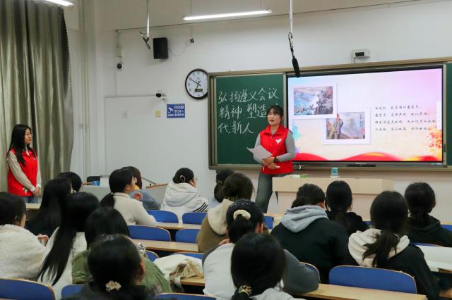 2023级思想政治教育专业陈怡辛表示,这次宣讲让我们对遵义会议的历史背景、会议过程以及精神内涵有了更深刻的感悟。对遵义会议精神的学习,有利于广大青年学子进一步提高党性修养,凝聚奋进力量,在实事求是中向前迈进。