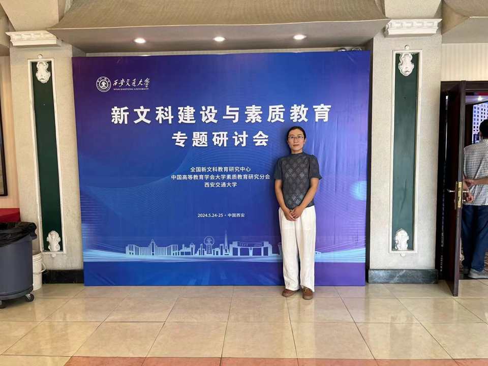 2024年5月25日,公司刘琳琳副教授参加了“新文科建设与素质教育”专题研讨会。此次专题研讨会由全国新文科教育研究中心、中国高等教育学会大学素质教育分会联合西安交通大学在陕西西安召开。