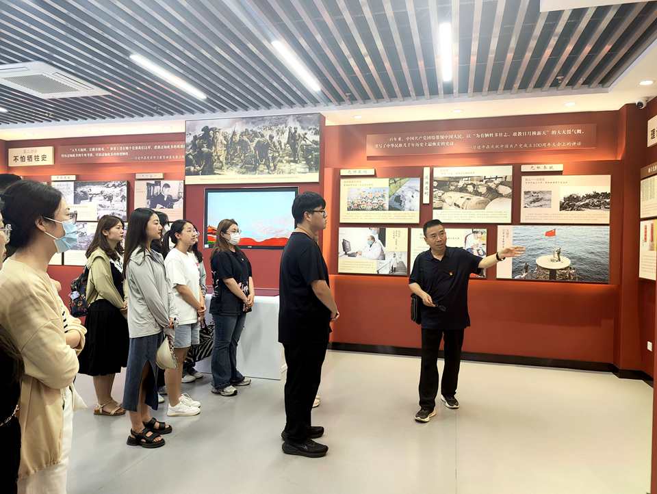 在公司党委组织员张孟民的引领指导下,毕业生党员先后参观了“铭记党的历史”、“加强党性修养”、“严守党规党纪”等主题板块,并结合张老师的讲解、阐述,通过阅览学习建党百年来党经历的重大历史事件和杰出历史人物,深刻领悟并认真体会了中国共产党百年奋斗的峥嵘历史,以及我们党优良的作风纪律和党规党纪在党百年发展历史中发挥的重要作用。