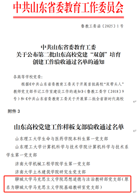 近日,中共山东省委教育工委公布了第二批山东高公司党建“双创”培育创建工作验收通过名单的通知,思想道德与法治教研部党支部顺利通过省级样板支部验收。